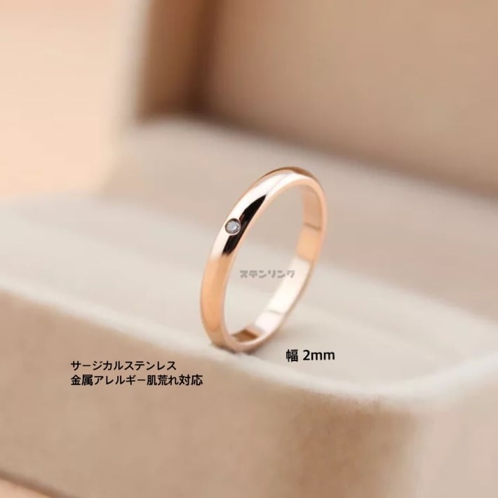 ワンストーン リング ステンレスリング 指輪 ピンキーリング ピンクゴールド
